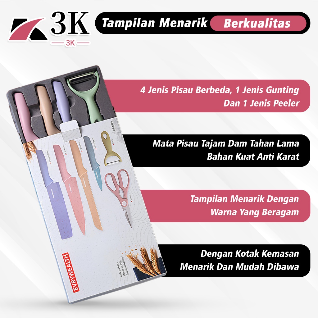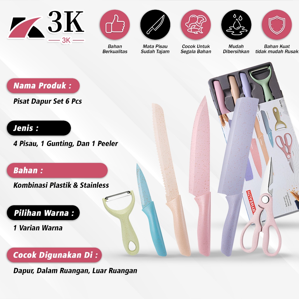 Net Store (3K Surabaya) Kitchen Knife Set Stainless Steel / Pisau Dapur Set 6in1 Bahan Stainless PREMIUM
