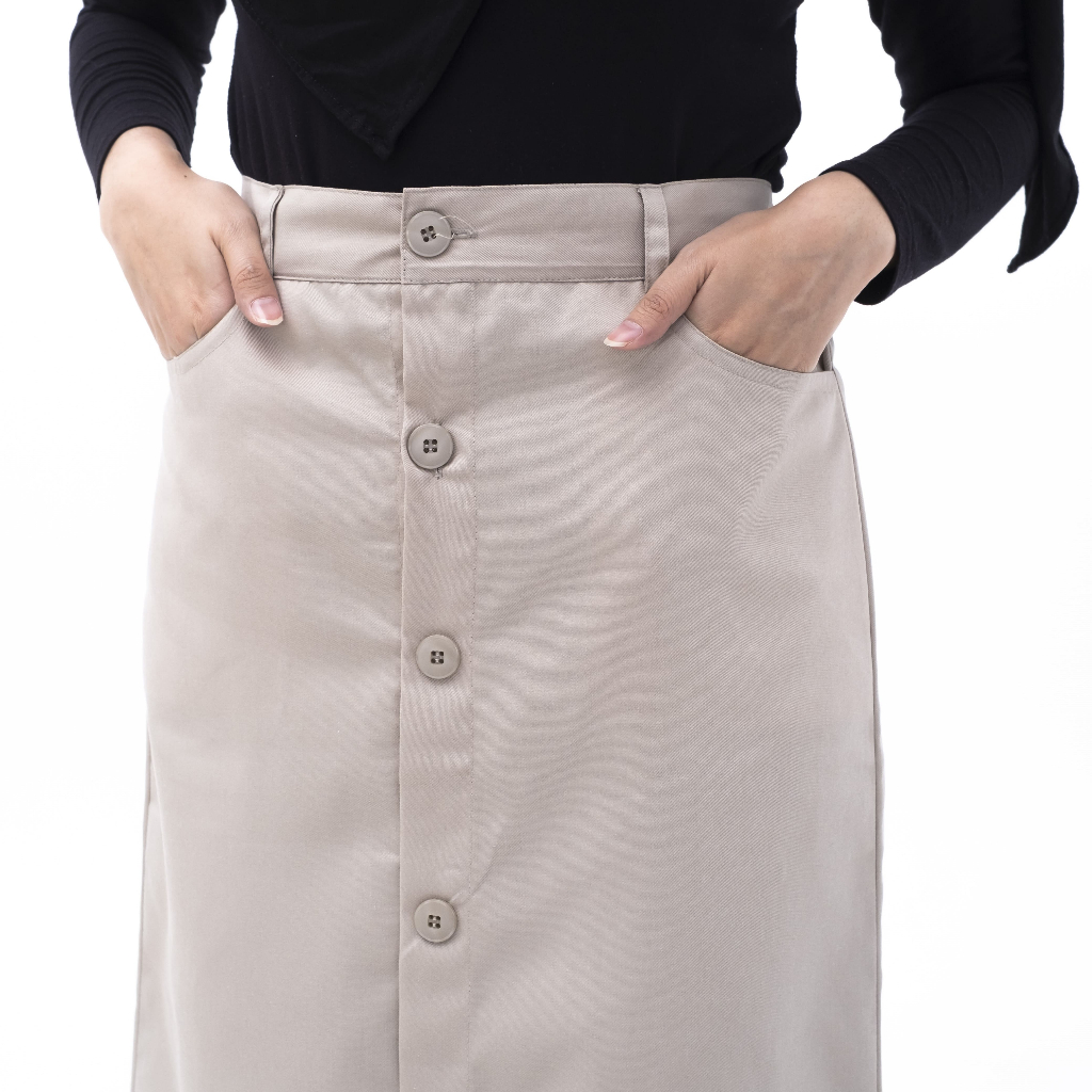 FINCLO- Button Skirt | Rok Span Model H Line Kancing Depan Full Straight Skirt Fine Kainka Hava Skirt