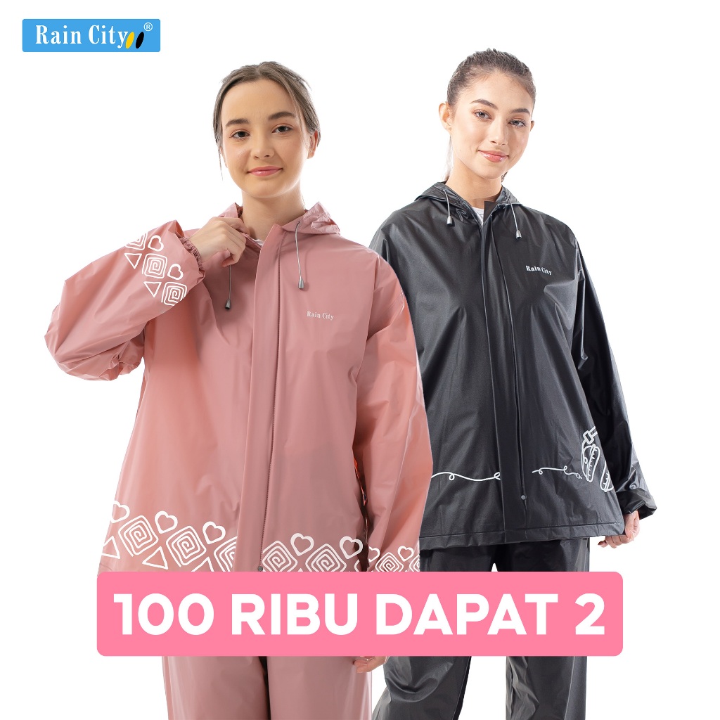 Geo Store RAIN CITY Jas Hujan Setelan Elina Warna Pastel Pink Aesthetic - 70067