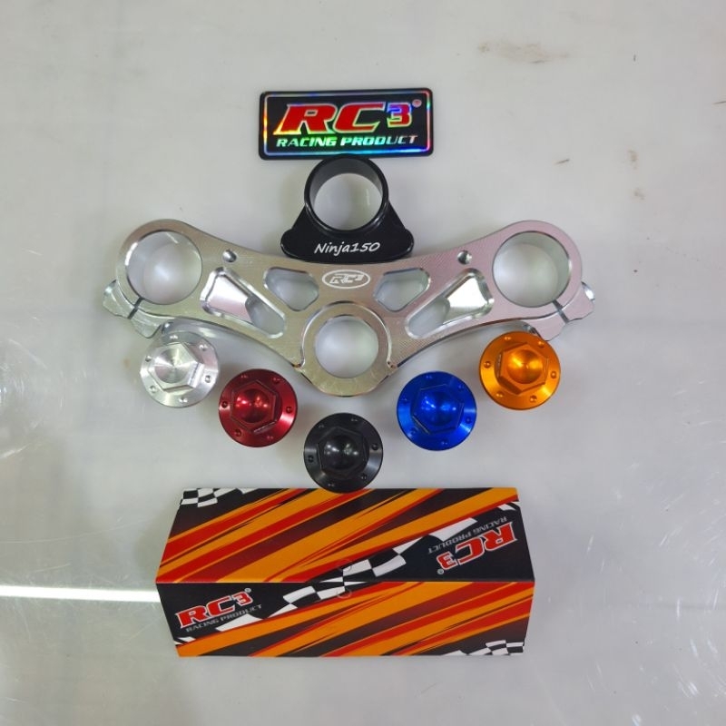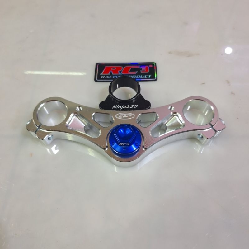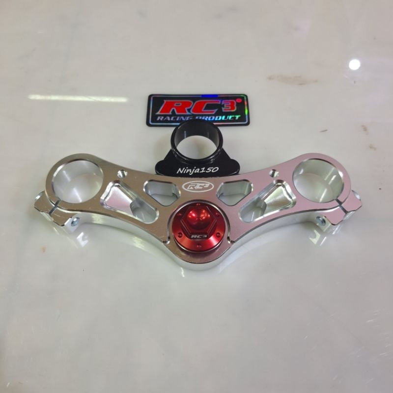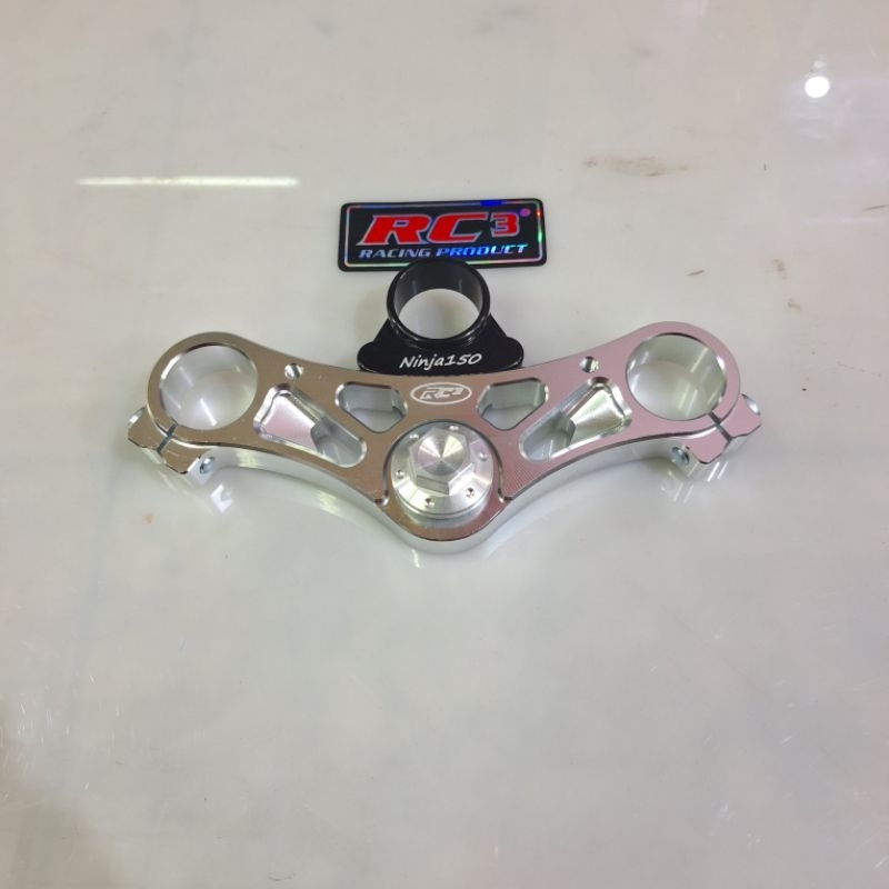 Triple Clamp Segitiga Segi Tiga Atas RC3 Ninja 150 RR ZX150 150RR KRR150 Full CNC Anodise Silver Berikut Baut Komstir
