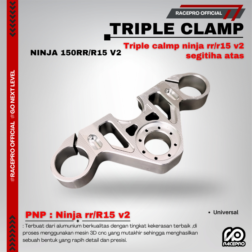 TRIPLE CLAMP NINJA 150RR & R15 V2 SEGITIGA ATAS RACEPRO FOR NINJA RR & R15 V2 TRIPLE CLAMP RACEPRO