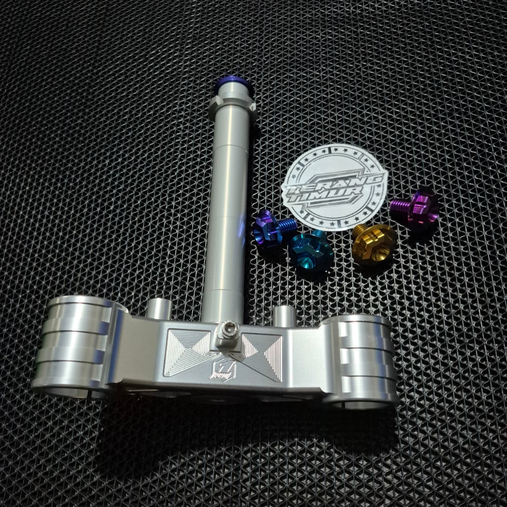 SEGITIGA TRIPLE CLAMP CNC BAWAH 3 BAUT NINJA R SS 150 + BAUT KOMSTIR TITANIUM PRO1 RACING