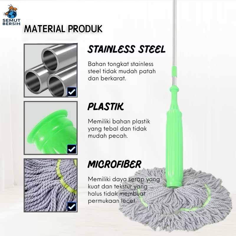 Get Store SEMUT BERSIH Pel Putar | Twist Mop | Pel Lantai Putar Otomatis dengan Kain Mikrofiber Daya Serap Tinggi Gagang Hijau