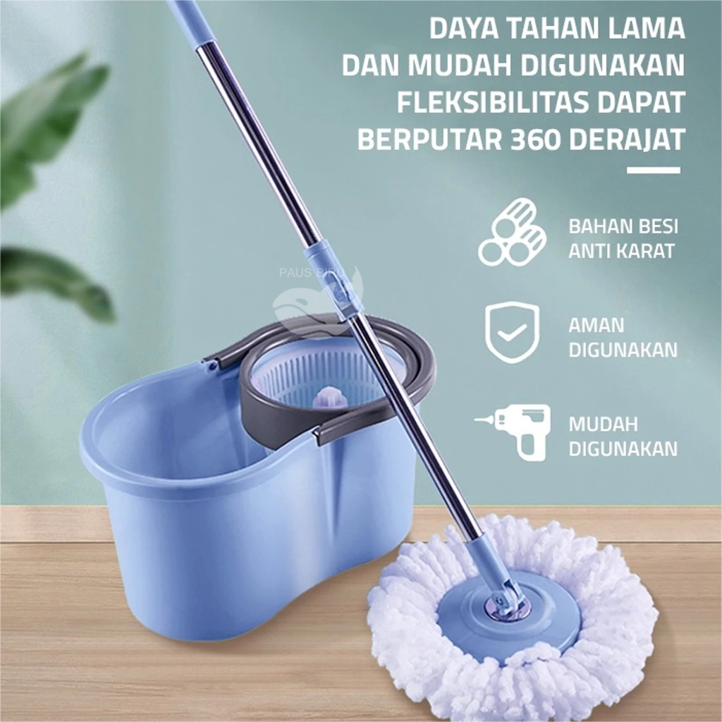 Get Store Paus Biru - Alat Pel Lantai Stainless Super Mop Dengan Ember Pencuci Putar 360°