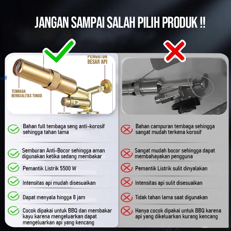 Net Store BBAK Kepala Gas Blowtorch Bahan Full Kuningan Anti Karat Las Api Bakar BBQ Paket Tabung Gas