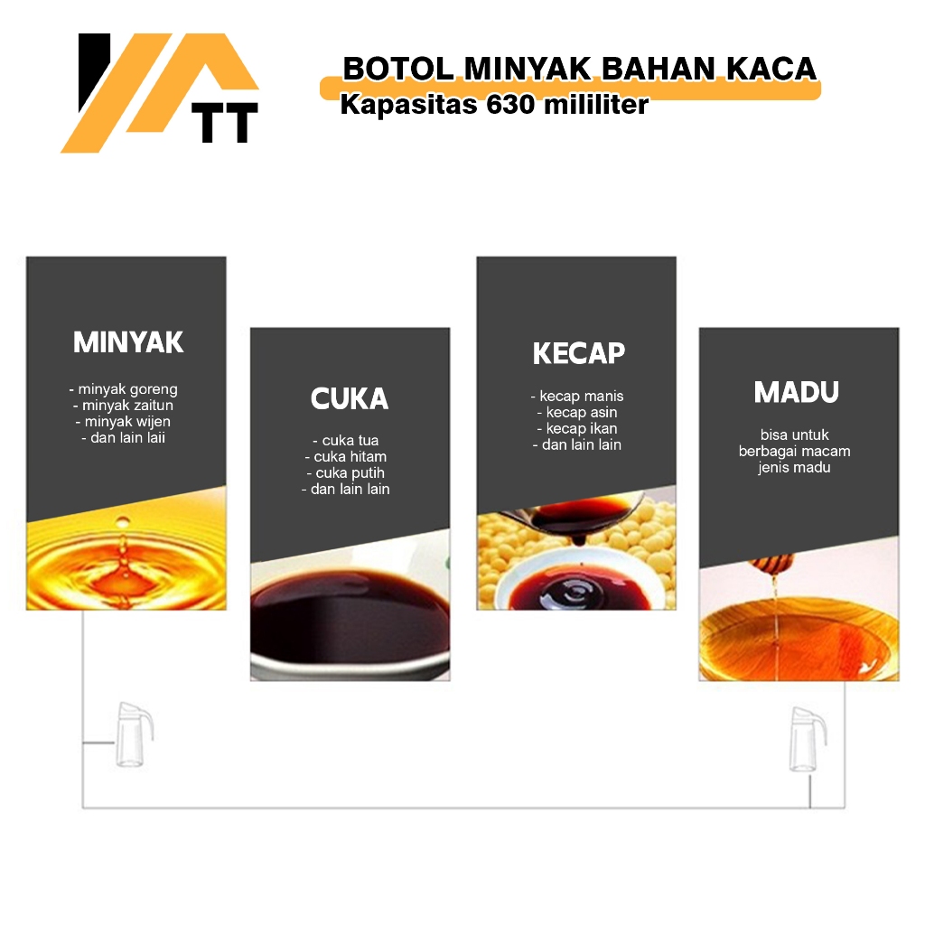 Get Store YATT COMBO HEMAT DAPUR Botol Minyak 630ML + 3 Pcs Botol Bumbu + Oil Pot Saringan Minyak 1.3 Liter