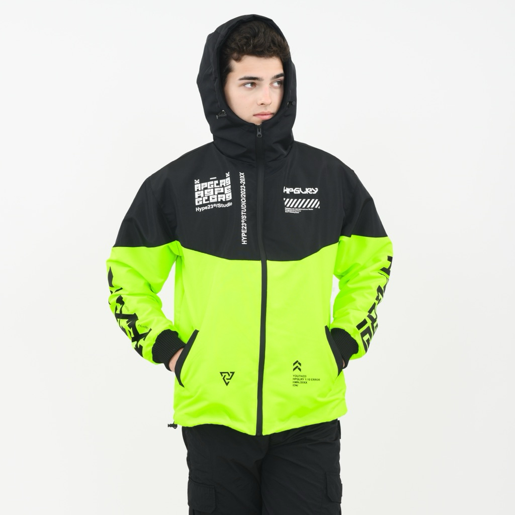 Toko Rencana HypeGlory - Jaket Parka Outdoor Waterproof Bomber Windbreaker Pria Wanita Black Volt Neon Sablon PVC Sport