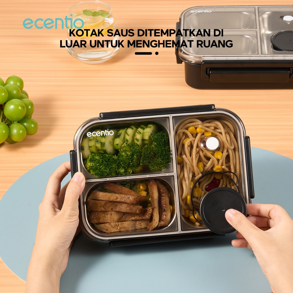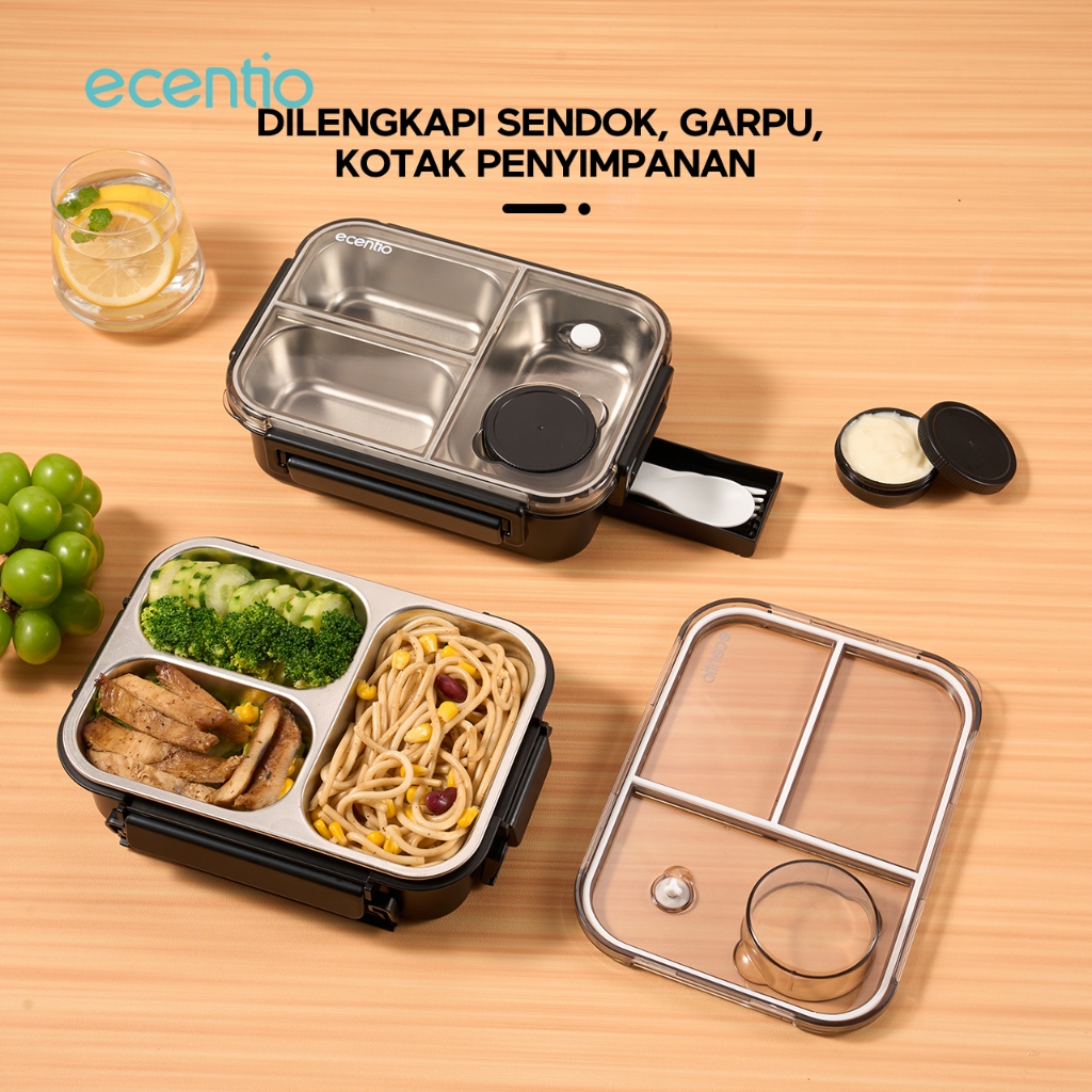 Get Store ecentio lunch box stainless 800ml sekat 3 dengan sendok sumpit free kotak sauce kecil