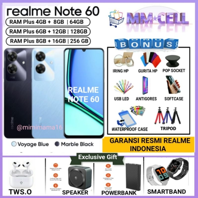 REALME NOTE 60 RAM 8/256 | NOTE 60 6/128 | NOTE 60 4/64 GB GARANSI RESMI REALME INDONESIA
