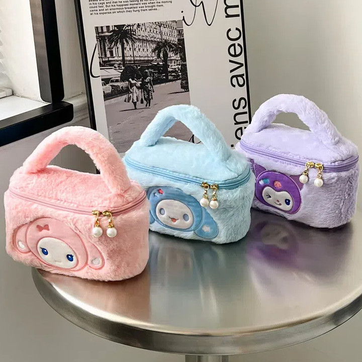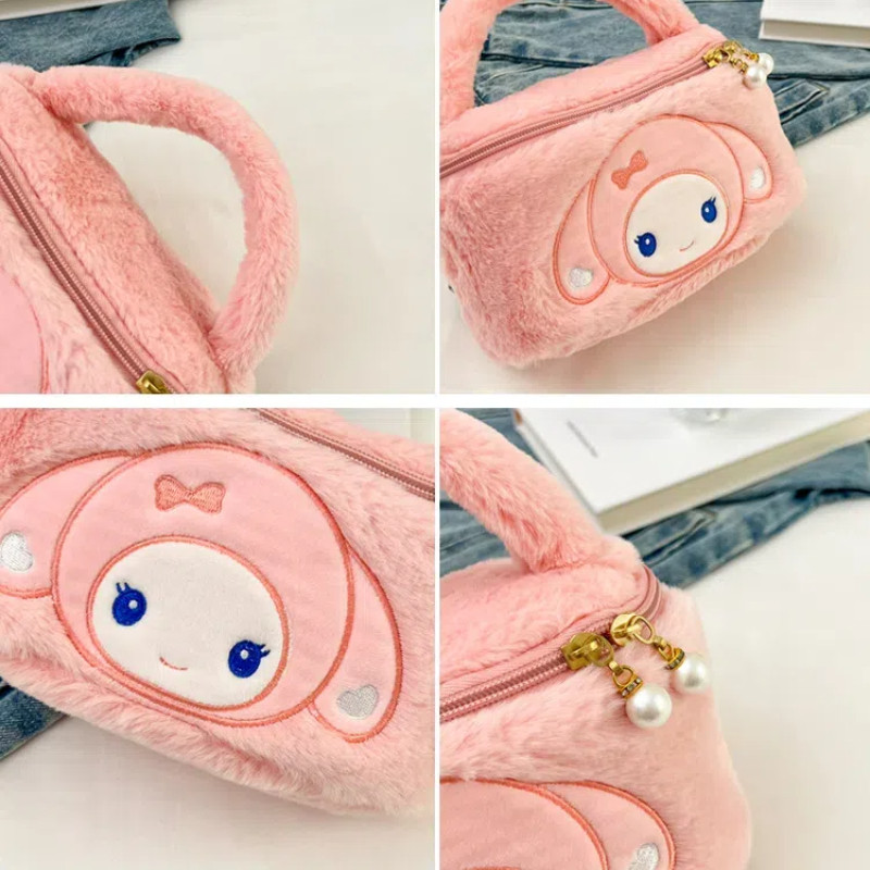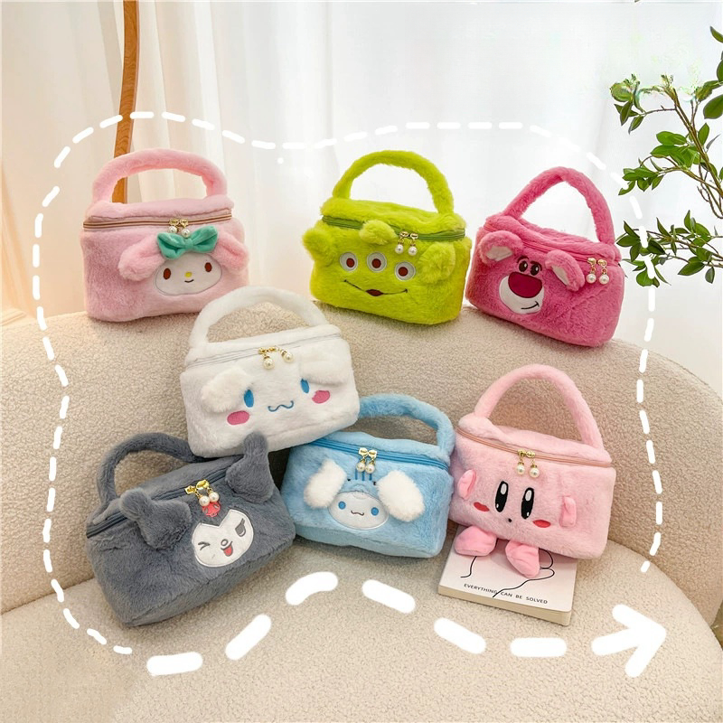 CARAT Tas Kosmetik Bulu Halus / Pouch Serbaa Motif Karakter / Tas Tangan Bulu Halus Lucu / Tas Kosmetik Karakter Lucu /T