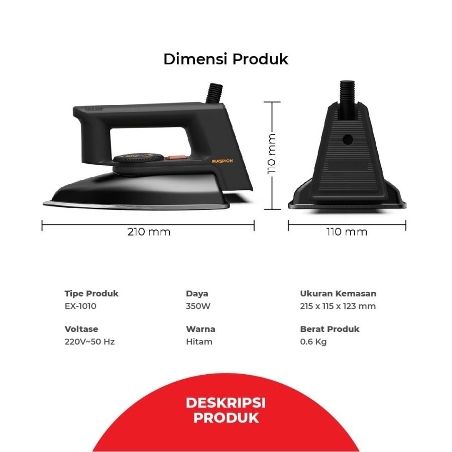 MASPION Setrika EX1010BB / EX 1010 BB / EX-1010 BB / EX-1010BB Hitam Gosokan Baju / Mini Iron Baju