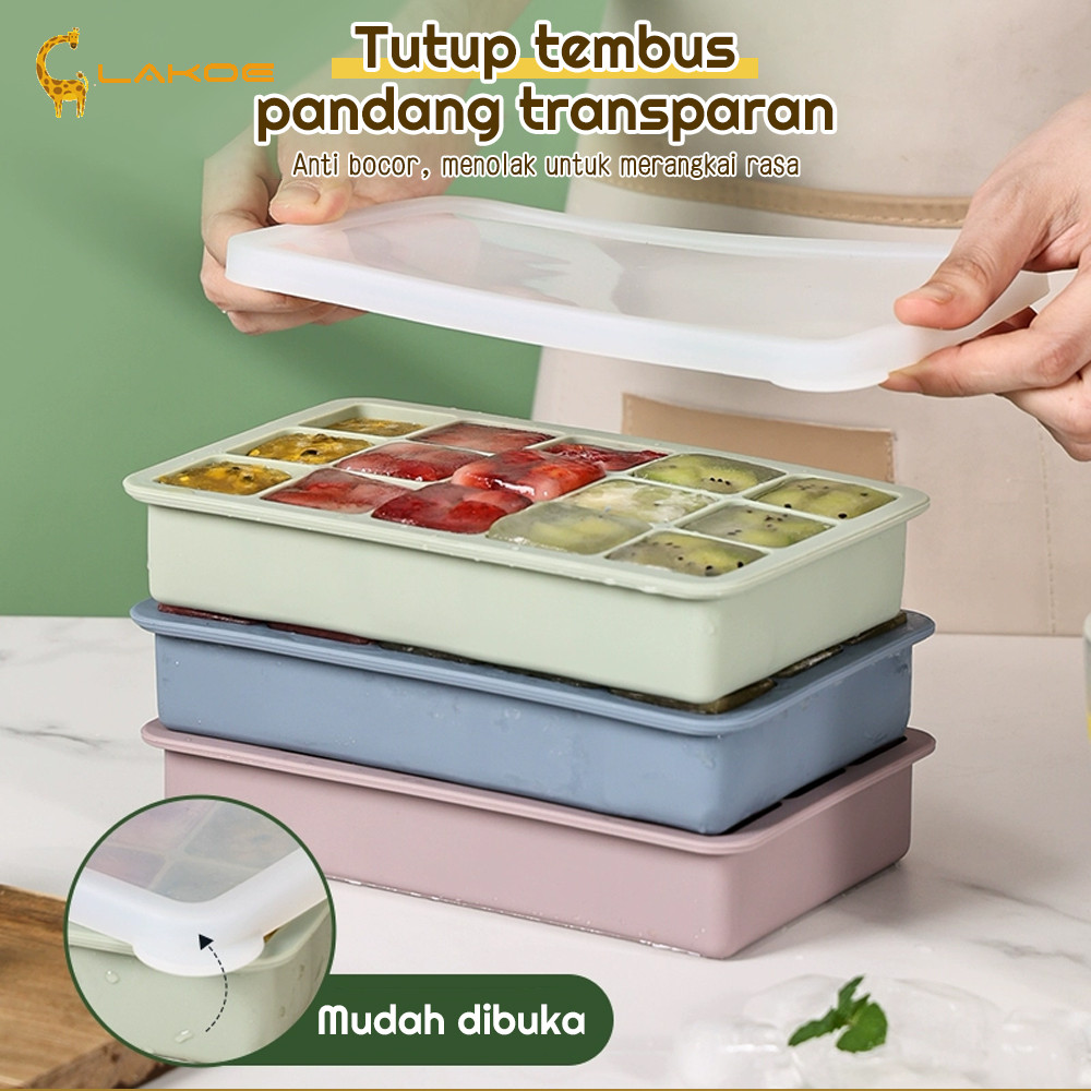 Get Store LAKOEOFFICIALMALL Cetakan Es Batu Silikon BPA Free Cetakan Wadah Mpasi 15Grid Ice Cube Tray Silicone