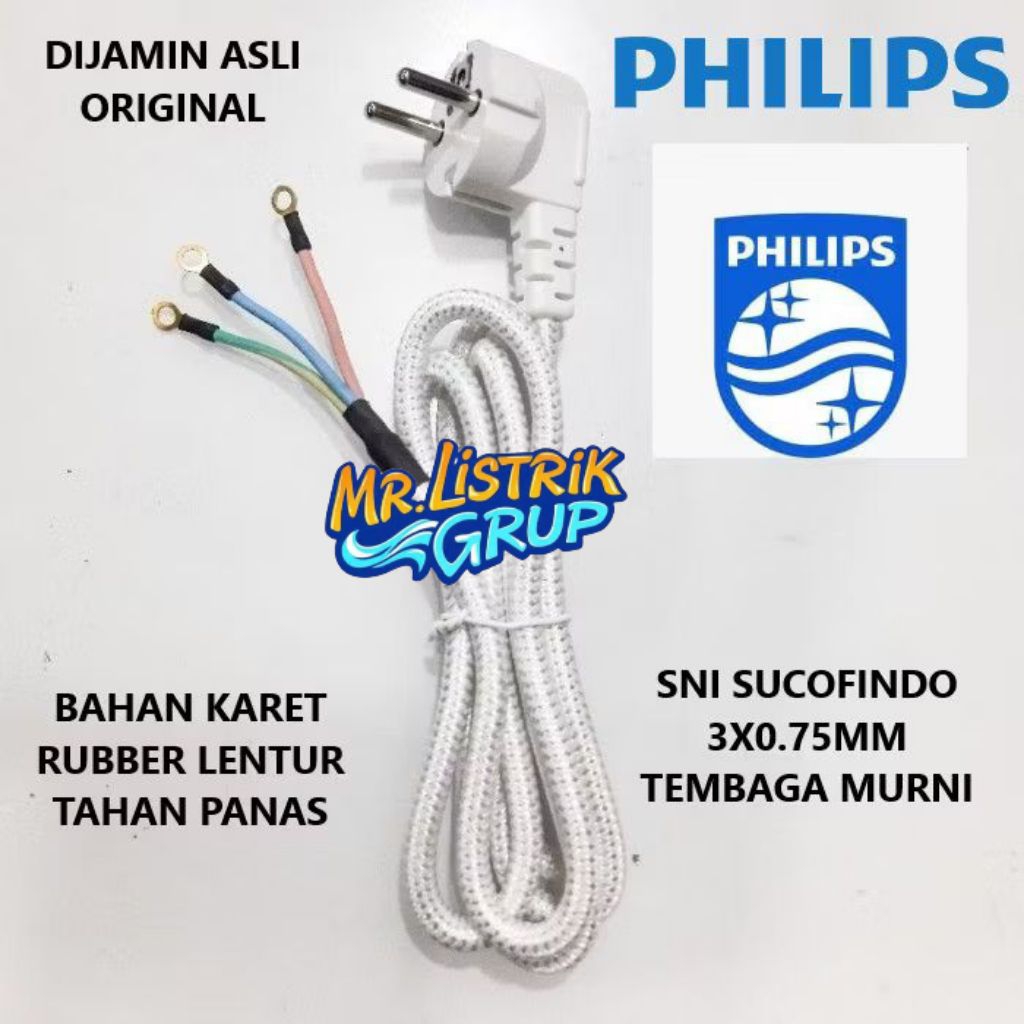KABEL SETRIKA 3WAY UNTUK SETRIKA PHILIPS PANJAG 1,6M SNI