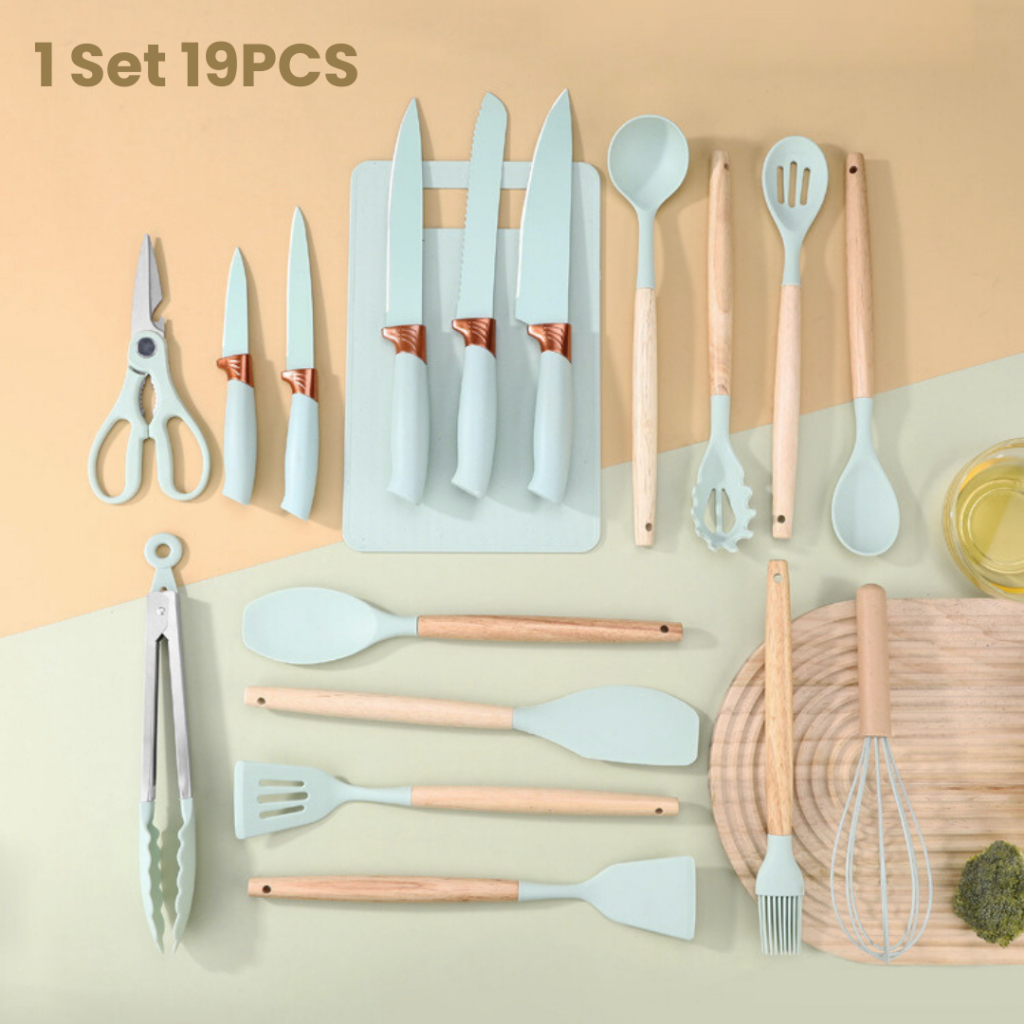 Net Store FUNNYCOOK Set Alat Dapur Silikon Sutil Silicone Kitchen Set 19 IN 1 Spatula Tahan Panas Free Wadah
