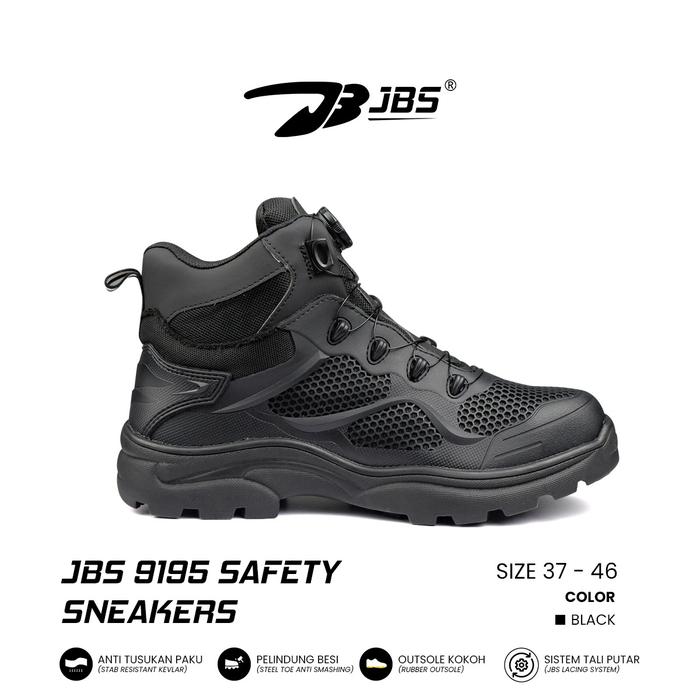 SEPATU JBS 9195 HITAM BESI ANTI TUSUK STAB RESISTEN KEVLAR SNEAKERS SAFETY PELINDUNG BAJA TALI PUTAR PRIA - HITAM, 38