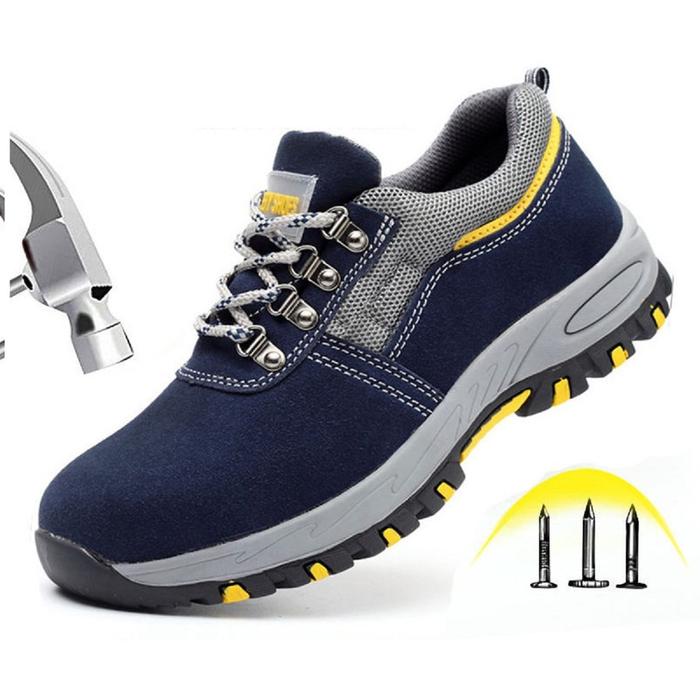 PRELESTY PROFESIONAL KULIT ASLI SEPATU SAFETY BOOTS PRIA SAFETY UJUNG BESI KERJA SNEAKER PROYEK SHOES OLAHRAGA COWOK OUTDOOR 066 - HITAM, 38