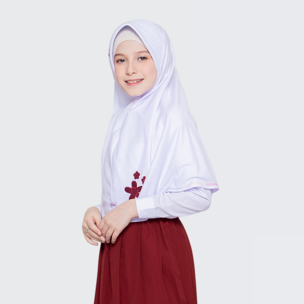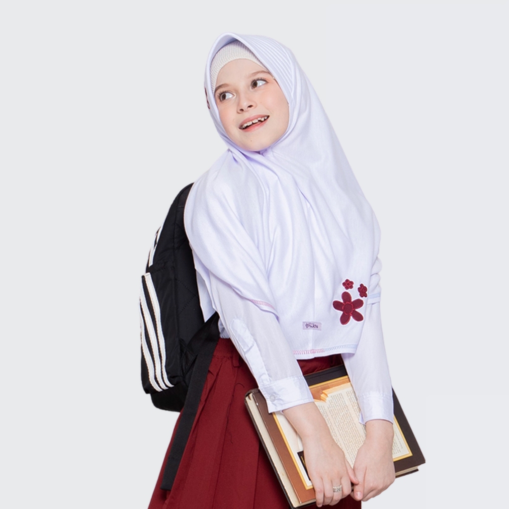 Vania Muthi - Hijab Bergo Anak Sekolah SD Motif Bunga Jasmine M 7-13 Tahun Jilbab Kerudung Kaos adem