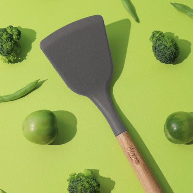 Net Store STEIN Spatula Silikon Gagang Kayu Anti Lengket Tahan Panas Food Grade | Sutil Choco
