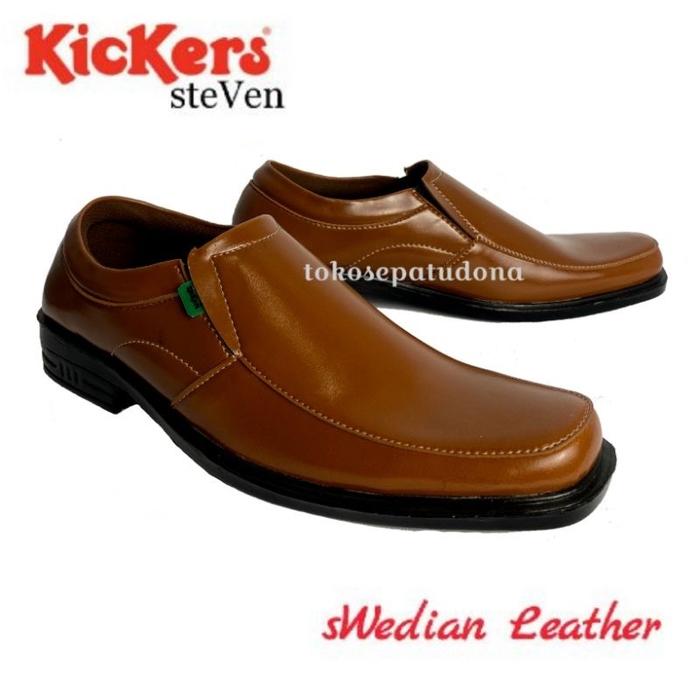 SEPATU KICKERS PANTOFEL KULIT STEVEN SWEDIA KERJA KANTOR PRIA - STEVEN HITAM, 45