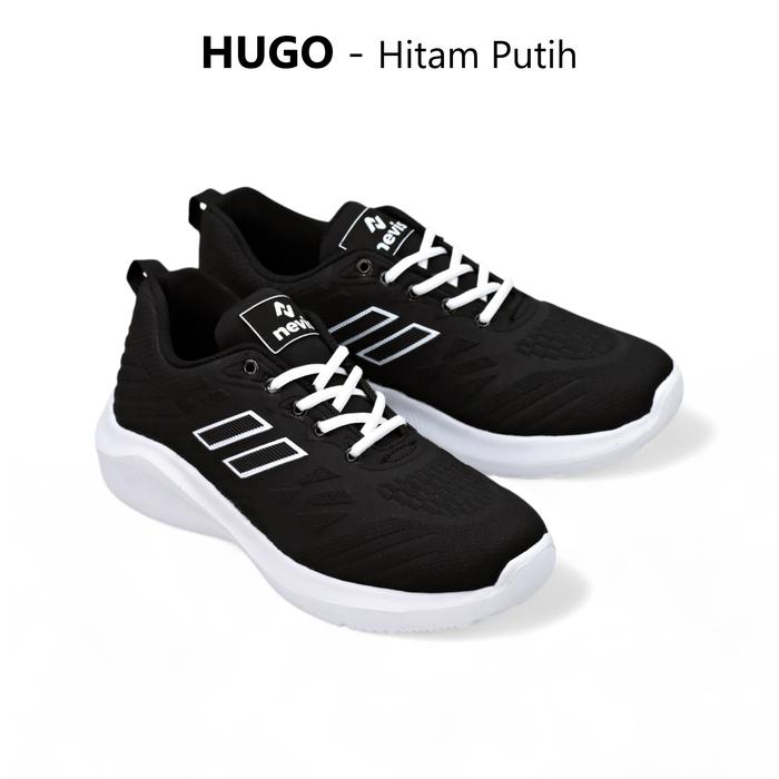 NEVIS SEPATU PRIA JUMBO BIG SIZE 39-49 HUGO CROSS SPORT SNEAKERS CASUAL OLAHRAGA RUNNING LARI FULL BLACK HITAM POLOS - HUGO - FULL BLACK, 39