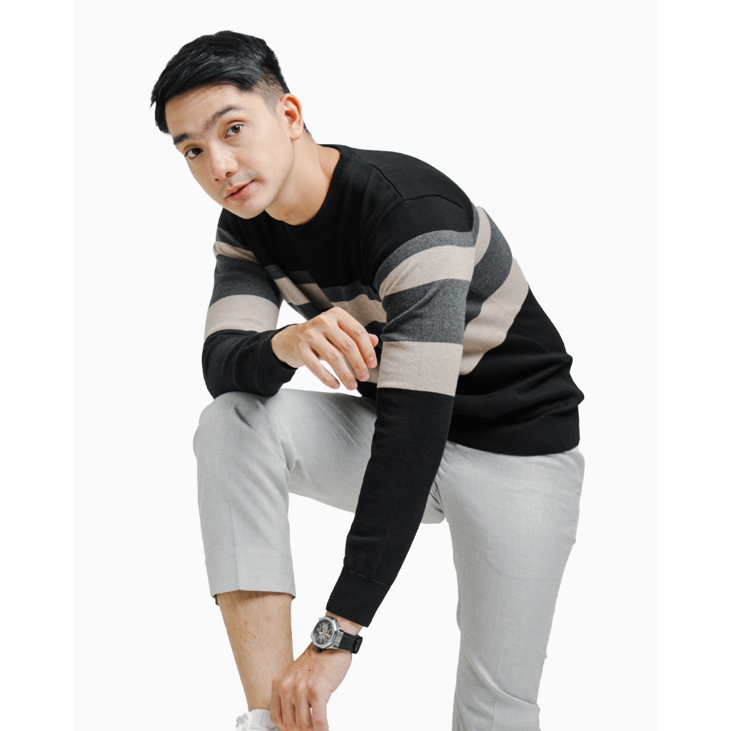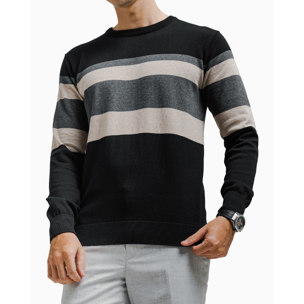 Toko Rencana Gomuda Sweater Rajut Pria Crewneck Stripe Pongo - Black