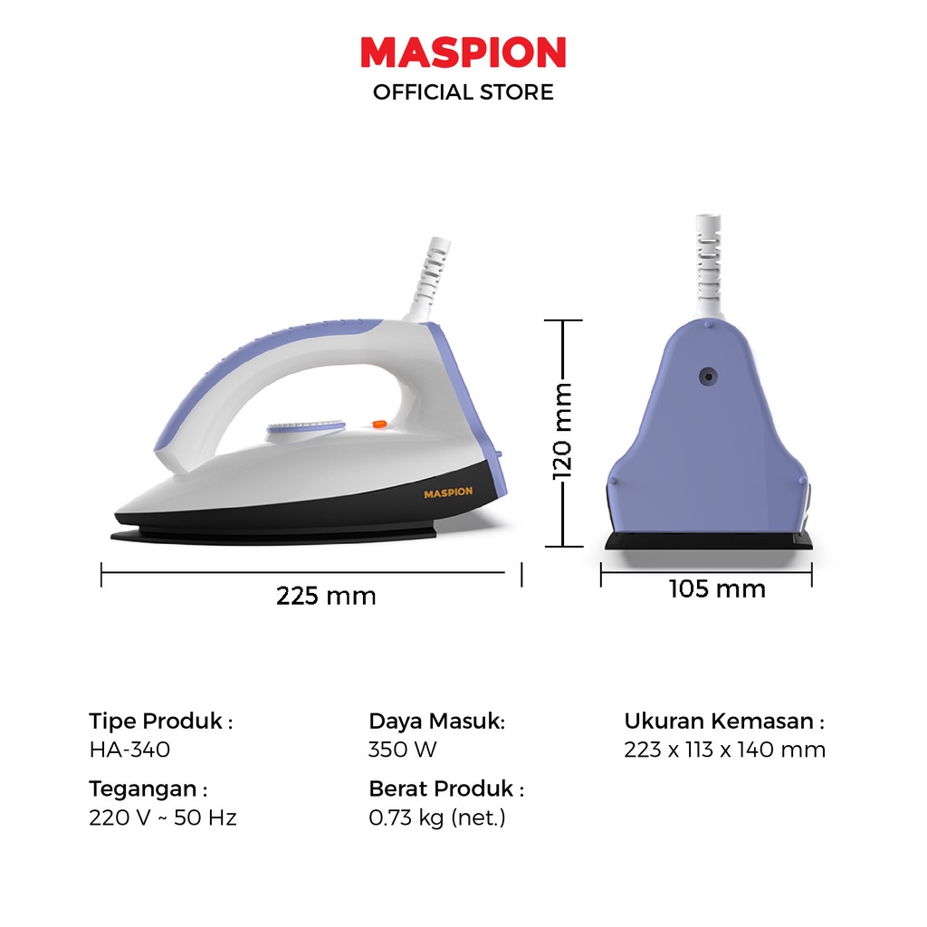 MASPION Setrika Terbaru Automatic Iron HA 340 Warna Random