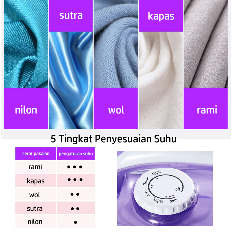 LUNALIFE Setrika Uap Low Watt 400w SNI Optimal Handheld Portable Multifungsi Tapak Non-Stick