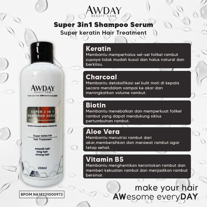FYC - AWDAY PAKET SUPER 3in1 SHAMPO CHARCOAL KERATIN & ALLin1 HAIRCREAM 100ml Conditioner Shampoo - keratin + haircream