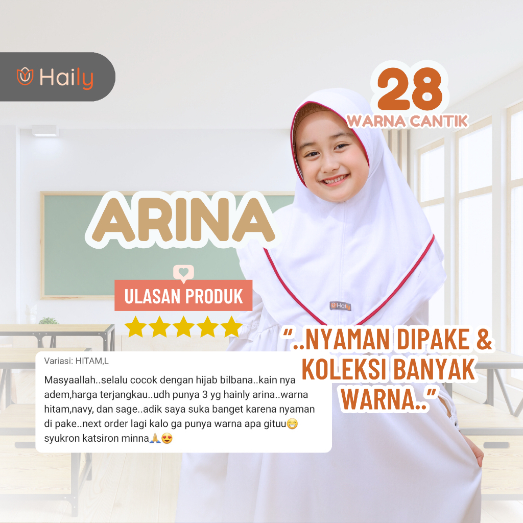 ARINA #1 Jilbab Sekolah Anak Premium ukuran TK SD SMP SMA Bahan Kaos Warna Putih Hijau Merah