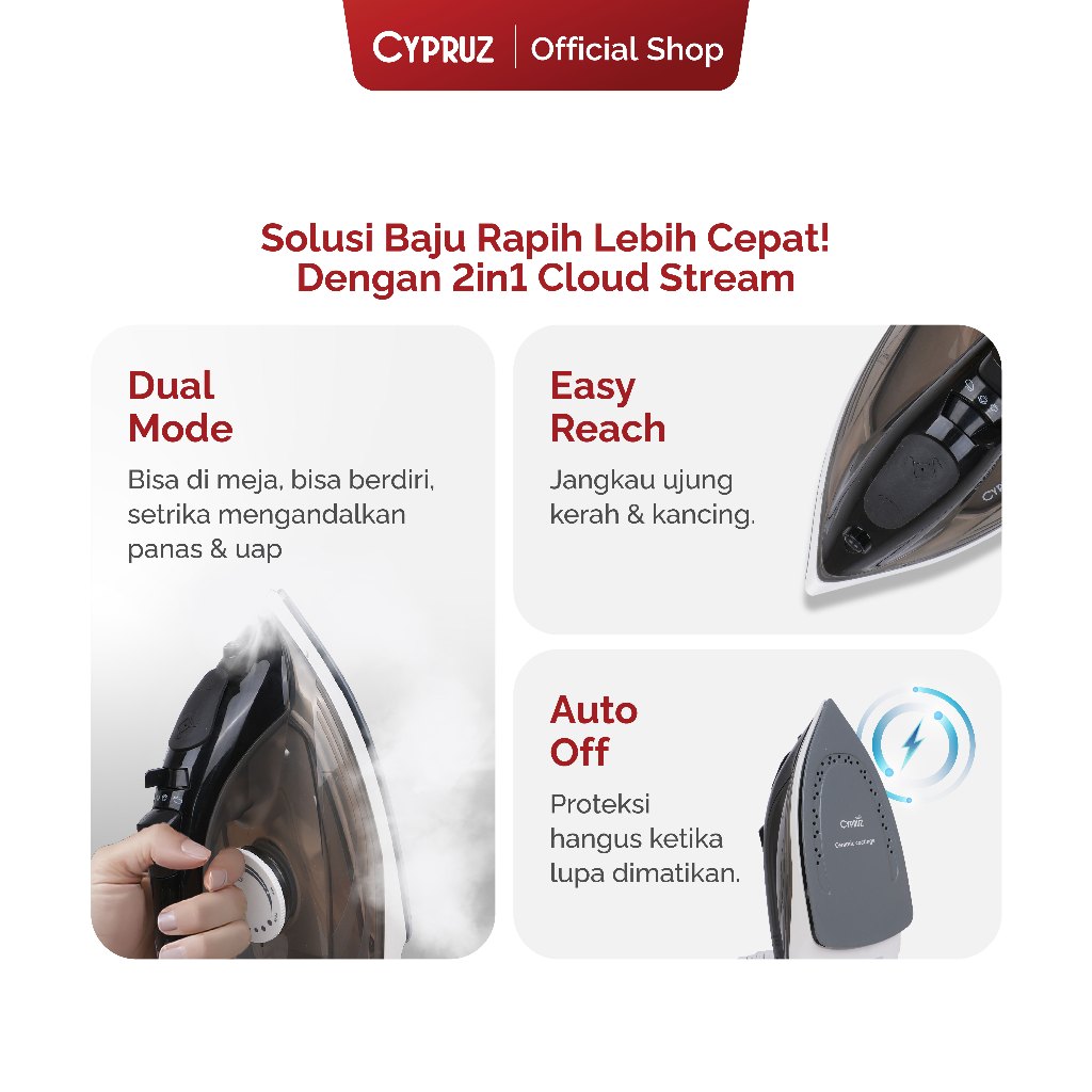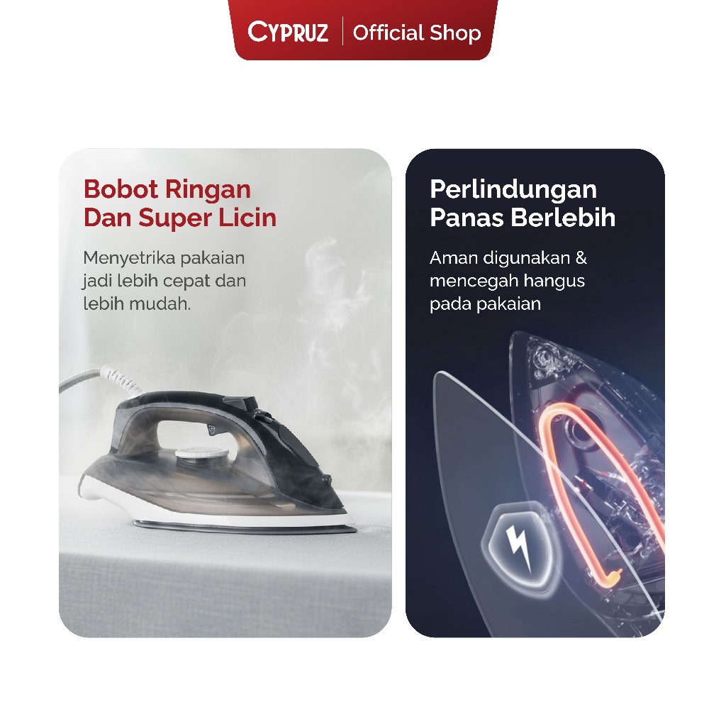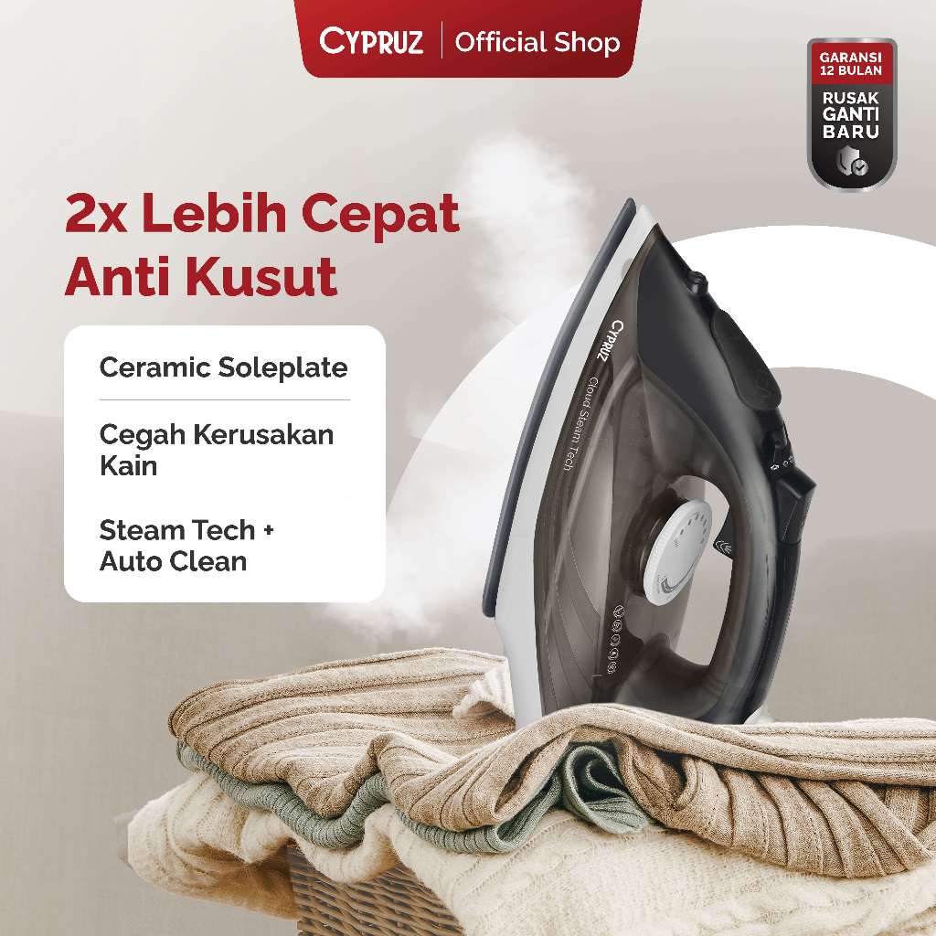 Cypruz Setrika Uap Compact Steam Iron Gosokan Baju Alas Keramik Tahan Lama