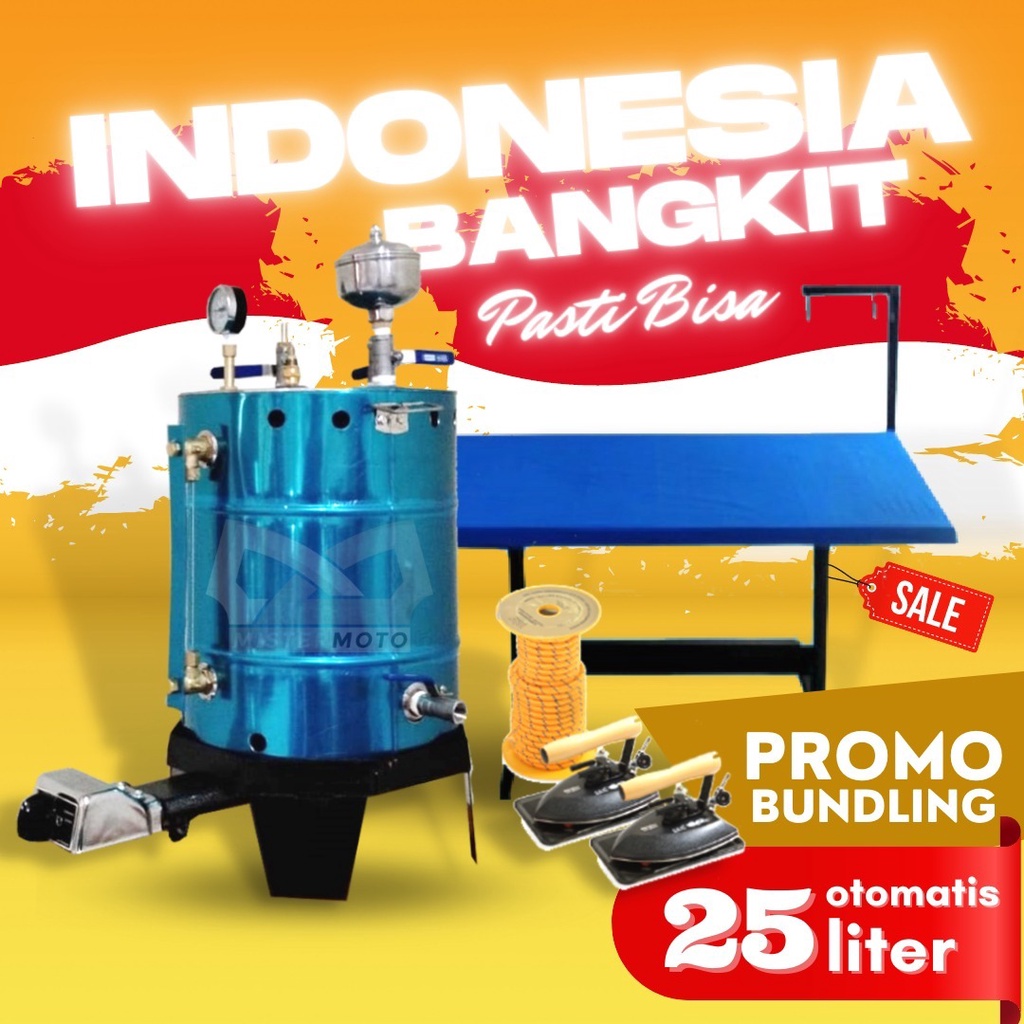 Setrika Uap Gas Boiler 25ltr Otomatis Api dan 2 Meja setrika Uap Bundling Paket Hemat