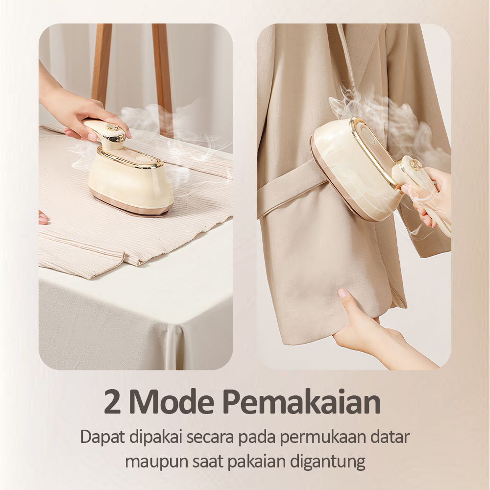 KAIKKI Steamer pakaian portabel yang dapat dilipat, desain genggam, setrika kering dan basah, ideal untuk penggunaan di