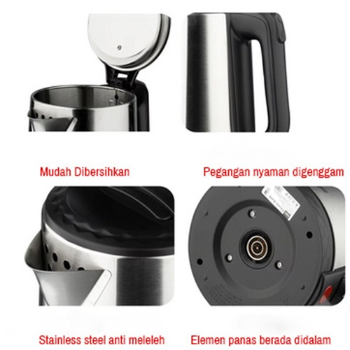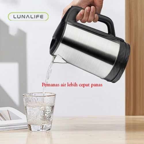 LUNALIFE Teko Listrik 2 Liter SNI 500 W Stainless Steel Pemanas Air Electric Kettle Ketel Official
