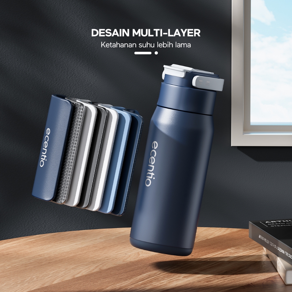 Net Store ecentio tumbler Stainless Vacuum 600ml Portable Termos Gagang Tersembunyi Botol minum besar