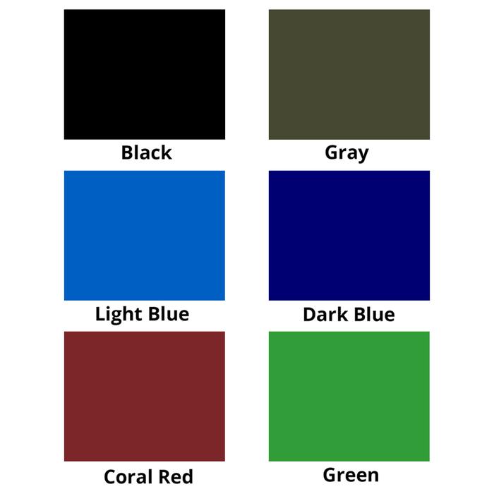 Black, Coral Red, Dark Blue, Gray, Green, Light Blue