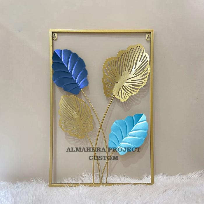 Wall Decor Hiasan Dinding Ukuran 40x60 frame metal gold leaf blu Hanging Decor
