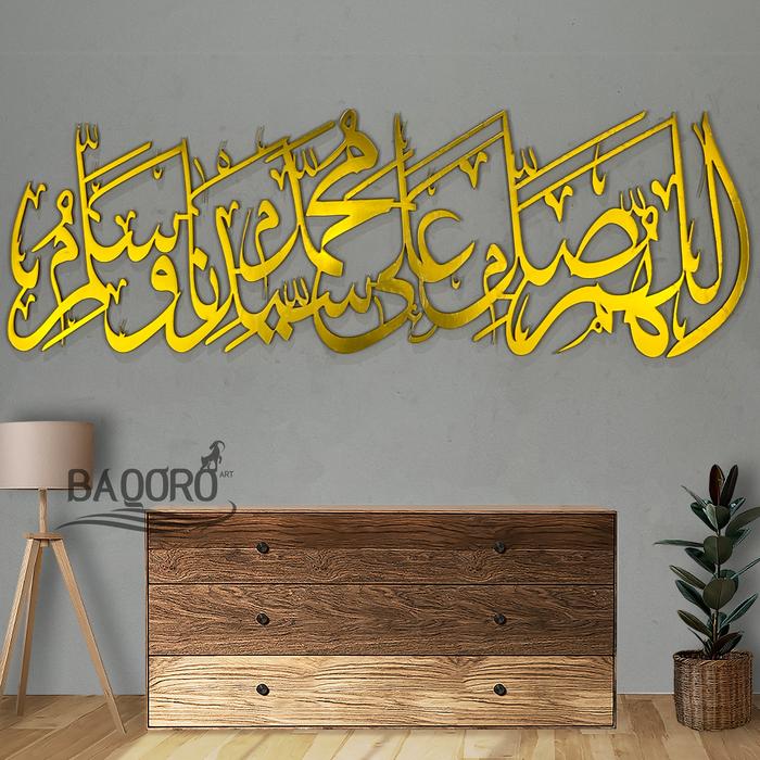 Hiasan Kaligrafi Sholawat Allahummasholli Alasayyidina Muhammad Akrilik Gold Silver Hitam Mirror