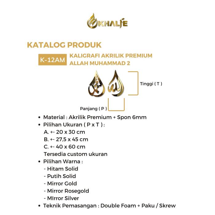 KHALIE K-12AM KALIGRAFI PREMIUM HIASAN DINDING ISLAMI MEWAH LAFADZ " Allah & Muhammad " DEKORASI