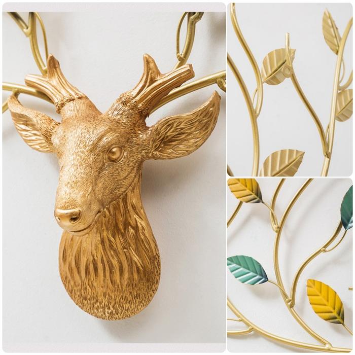 Hiasan Dinding Kepala Rusa Tanduk Daun Home Wall Decor Deer Leafs Horn