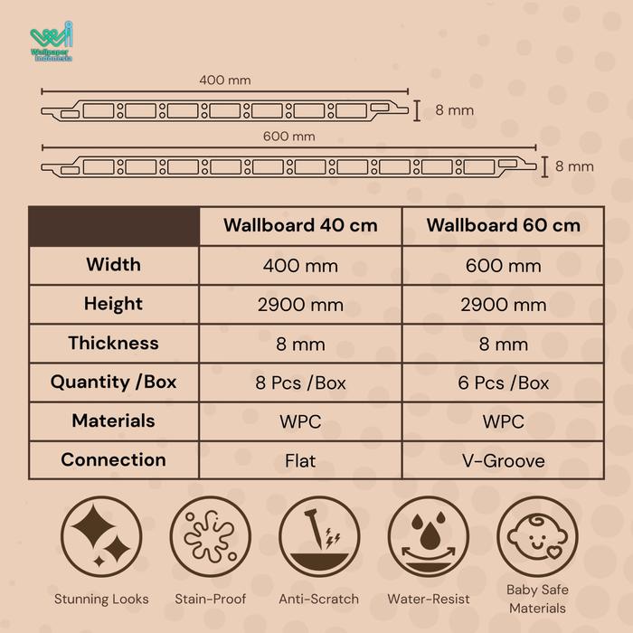 Wallboard WPC Kayu Fabric Marmer Panel Dinding tebal 8mm Wallpanel PVC
