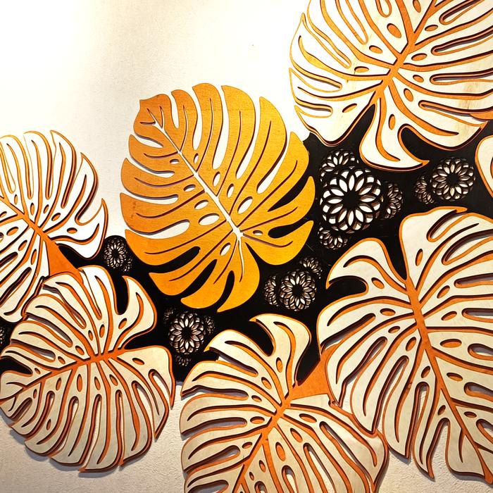 GRANDIOSA MONSTERA HIASAN DINDING UKURAN BESAR 5m X 1.2m bahan kayu albasia multilayer