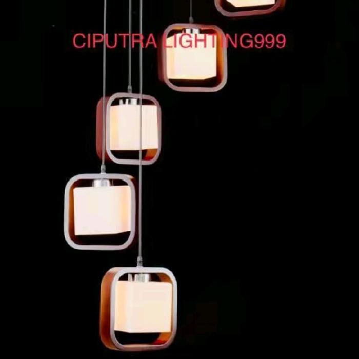 CIPUTRA LIGHTING999 Lampu Gantung Hias Void Tangga Minimalis 7 Lampu Kaca Kotak Besi Kayu E27