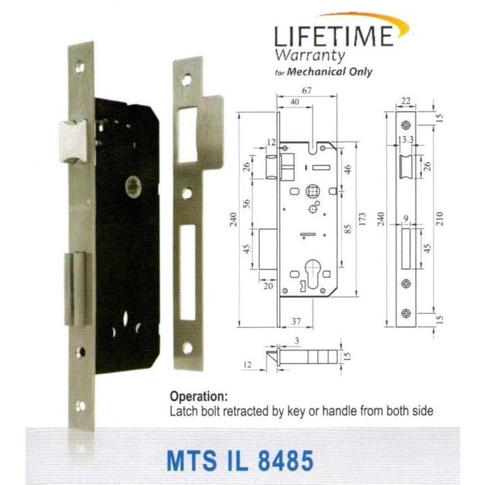 1 Set Kunci Pintu Kayu Dekkson Handle + Body Mortise + Knob Silinder