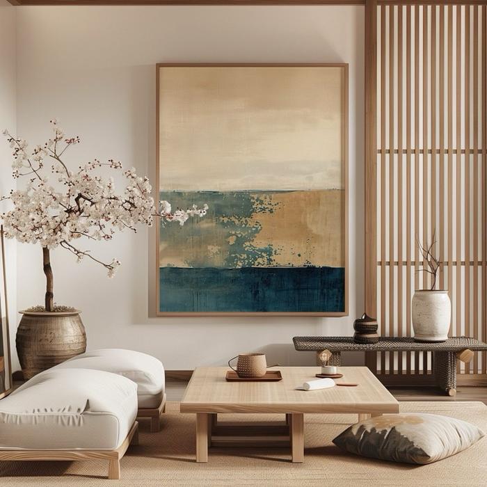 LUKISAN ABSTRAK TEMA JAPANDI (Termasuk frame dan tinggal pajang)
