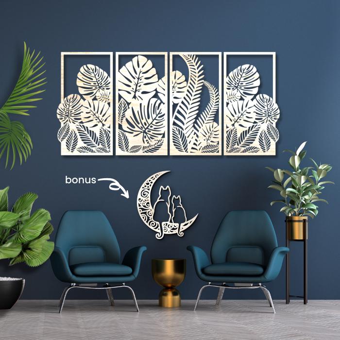 MONSTERA FERN DECOR - HIASAN DINDING UKURAN BESAR 1.2m X 0.6m bahan kayu albasia 3mm
