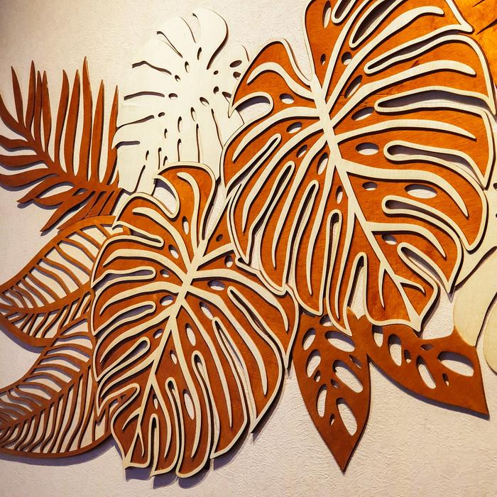 ALOKASIA & MONSTERA HIASAN DINDING UKURAN BESAR 1.8m X 0.9m bahan kayu albasia multilayer