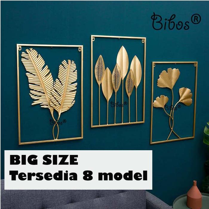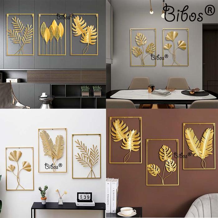 Hiasan Dinding Nordic Aesthetic Besar Wall Decor Daun Leaf Gold Mewah Dekorasi Tembok Frame Metal