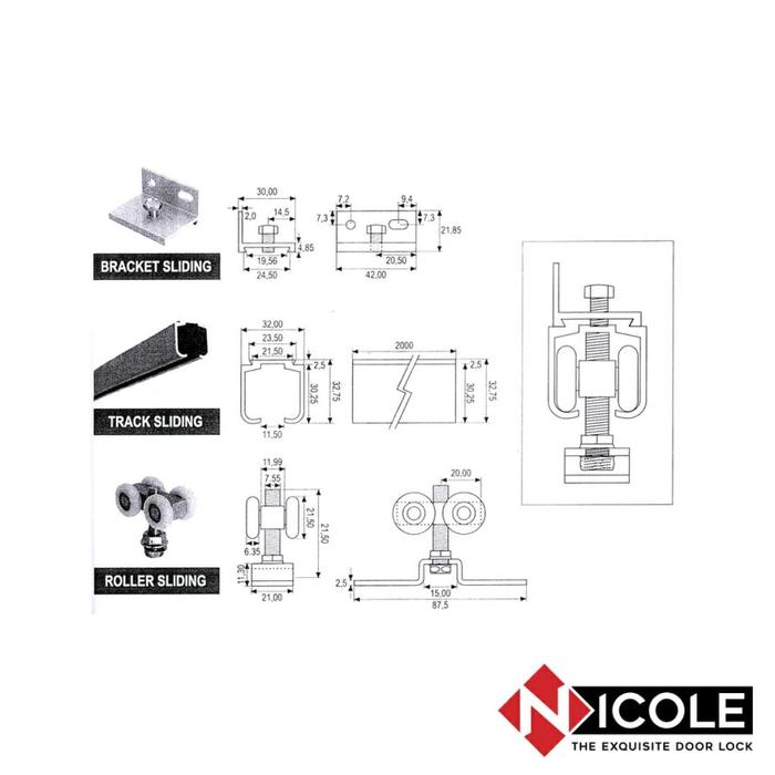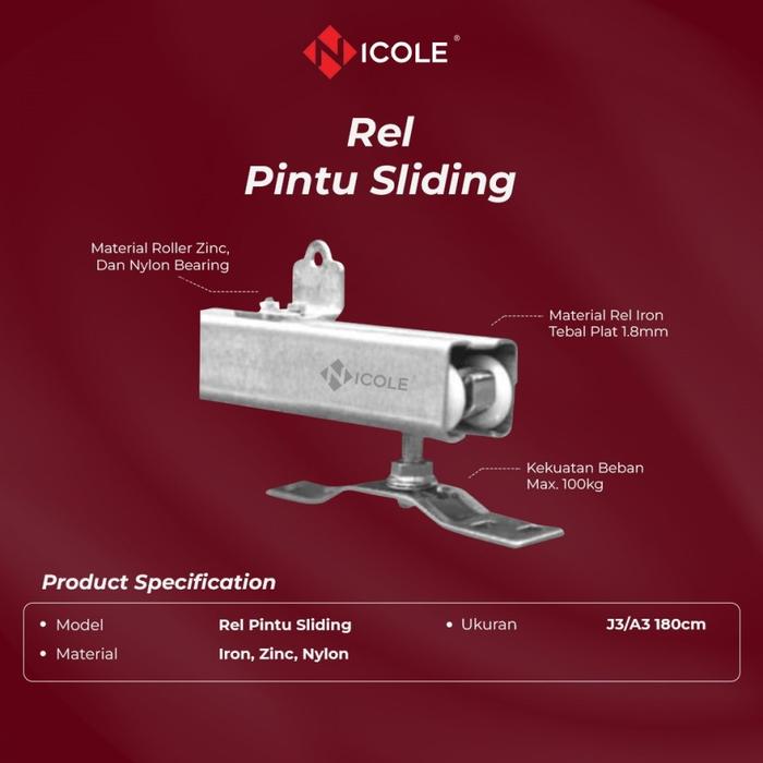 Nicole Rel Pintu Sliding Set 1 Paket Sliding Roller Rel Pintu Geser