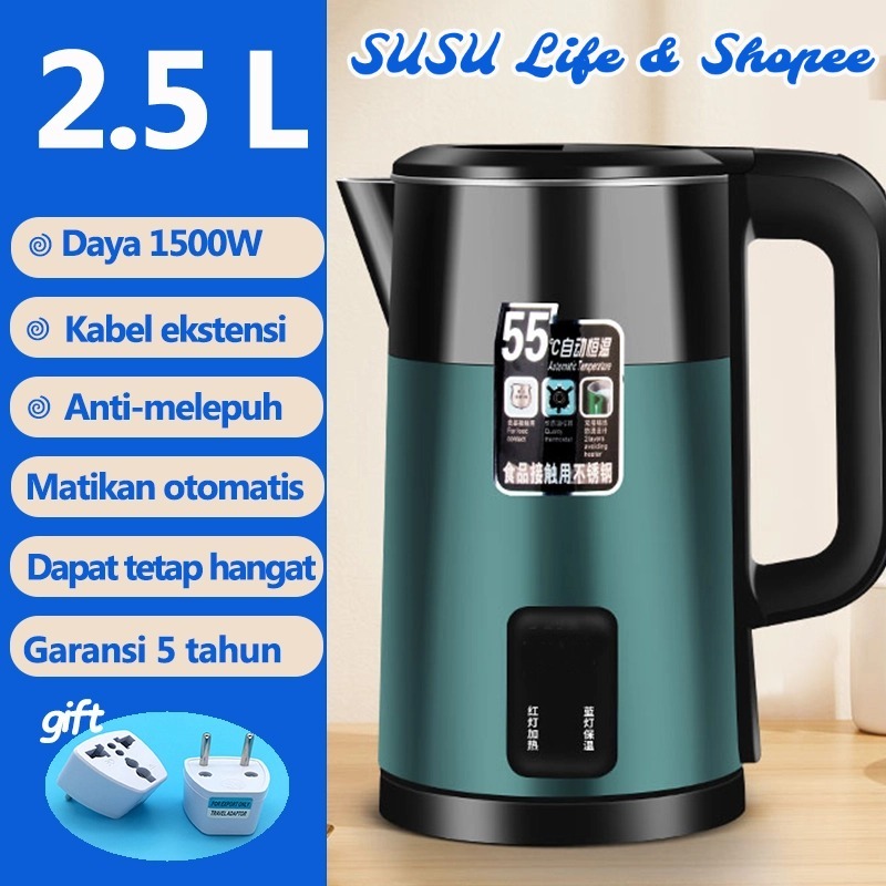 SUSU Life Teko Listrik Pemanas Air Electric Kettle 2.5L Stainless Steel 1500W Ketel Air Multifungsi