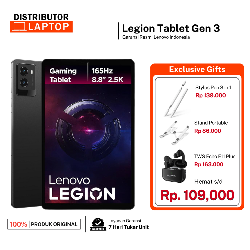 Tablet - Lenovo Legion Tab Gen 3 Snapdragon 8 - 8.8 inch 2.5K 165Hz WiFi Only Eclipse Black